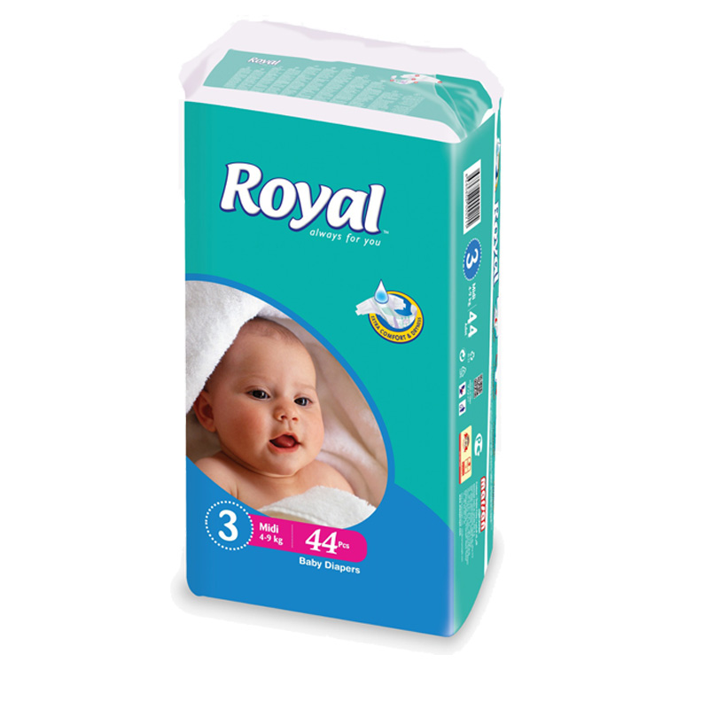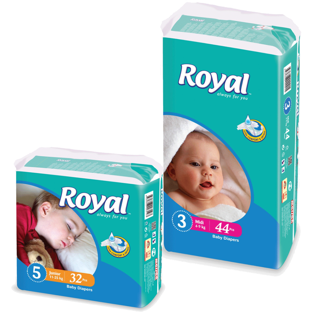 Royal Baby bebek bezleri bebeğinizin belini nazikçe saran elastik kanatlara, sıvıyı eşit olarak dağıtan yumuşacık üst yüzeye, nefes alan tekstil dış yüzeye ve 12 saate kadar kuruluk sağlayan yüksek emme kapasitesine sahiptir. Royal Baby bebek bezleri gün içerisinde özgürce hareket, gece boyu iste maksimum kuruluk sağlar. Bebek bezlerimizde kullandığımız bütün ham maddeler dermatolojik olarak test edilmiş olmakla beraber son teknoloji üretim tesislerimizde insan eline değmeden üretilmektedir. ROYAL BABY İLE BEBEKLER MUTLU, EBEVEYNLER HUZURLU!