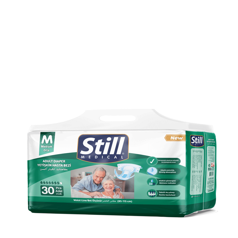 БЛАГОДАРЯ СВОЕЙ ВЫСОКОЙ ВПИТЫВАЮЩЕЙ СПОСОБНОСТИ ВЗРОСЛЫЕ С ПРОБЛЕМАМИ НЕДЕРЖАНИЯ МОЧИ ЧУВСТВУЮТ СЕБЯ В БЕЗОПАСНОСТИ. ПОДГУЗНИКИ STILL MEDICAL ДЛЯ ВЗРОСЛЫХ ОБЕСПЕЧИВАЮТ СВОБОДУ ДВИЖЕНИЙ ДНЕМ И МАКСИМАЛЬНУЮ СУХОСТЬ НОЧЬЮ. ВСЕ СЫРЬЕ, КОТОРОЕ МЫ ИСПОЛЬЗУЕМ В НАШИХ ПОДГУЗНИКАХ ДЛЯ ВЗРОСЛЫХ, ПРОШЛИ ДЕРМАТОЛОГИЧЕСКИЕ ИСПЫТАНИЯ И ПРОИЗВОДИТСЯ НА НАШЕМ СОВРЕМЕННОМ ПРОИЗВОДСТВЕННОМ ПРЕДПРИЯТИИ БЕЗ УЧАСТИЯ ЧЕЛОВЕКА. ПОЧУВСТВУЙТЕ КОМФОРТ И УДОБСТВО ВМЕСТЕ СО STILL MEDICAL!